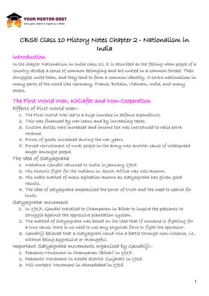 CBSE Class 10 History Notes Chapter 2 Nationalism In India