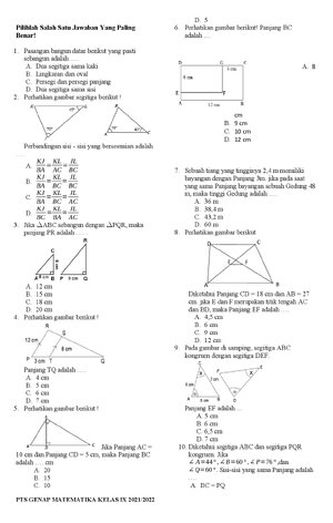 Latihan Soal Kesebangunan Dan Kekongruenan