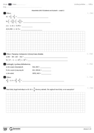 KlasóWka 6.III.P. DziałAnia Na Liczbach Część 2 Test Ekowydruk