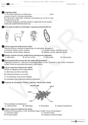 Tajemnice Przyrody Klasa 4 Dział 3 Test#2
