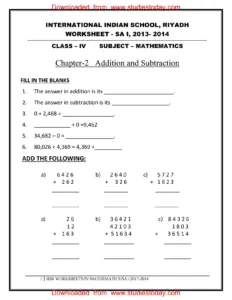 CBSE Class 4 Maths Revision Worksheet – Addition and Subtraction