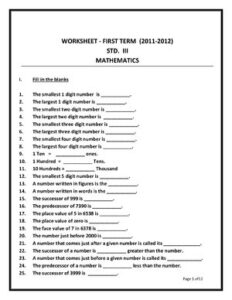 CBSE Class 3 Mathematics Worksheet (95) Revision