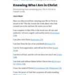 Discover how amazing your life in Christ is meant to be with Joyce Meyer’s teachings on knowing who you are in Christ. Gain insight into living a powerful, fear-free life through the Holy Spirit. Learn to walk in authority, faith, and victory over the enemy. Embrace your identity in Christ, reign in life through Jesus, and live a holy, blameless life by God’s grace. Equip yourself to extinguish attacks and overcome challenges with strength from Christ. Uncover the abundant blessings and …