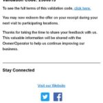 Get a validation code after completing a survey at McDonald’s! Redeem it on your next visit to participating locations. Your feedback helps improve service. Stay connected and join the email list for more updates. Participate in up to five surveys per month per restaurant. Check out the SMG Privacy Policy and Terms of Service. Powered by SMG for McDonald’s customers.