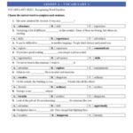The document discusses vocabulary related to experiences, skills, and careers. It includes vocabulary exercises where students choose the correct word to …