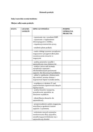 Przykladowo Wypelniony Dziennik Praktyk Logistyka