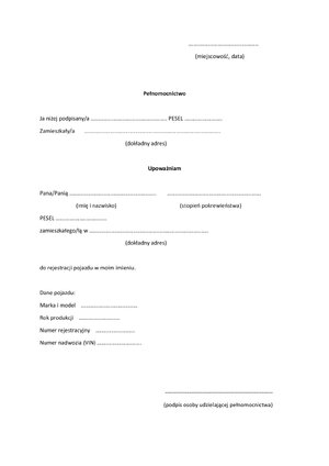 PełNomocnictwo Do Rejestracji I Wyrejestrowania Pojazdu