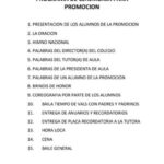 Discover a comprehensive ceremony program for graduation with presentation of students, speeches from the school director, tutor, and class president, student address, choreography, prayer, plaque award, national anthem, toast, yearbook and memento distribution, waltz with parents, a lively hour, dinner, and a general dance. Make your graduation memorable with this well-structured event itinerary.