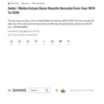 Discover the comprehensive chart of Kalyan Matka results spanning from 1974 to 2019 with detailed winning numbers for Monday through Saturday games over 45 years. Access this valuable resource uploaded by A.K.A. Hajion on Dec 30, 2012, with AI-enhanced title and description. Explore the Satta Matka Kalyan Bazar Results Records for strategic insights. Download, save, embed, print, share, and report on this essential data. Get your copy for free for 30 days and stay ahead in the game!