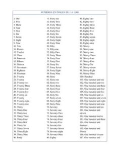 Numeros En Ingles De 1 A 1,000
