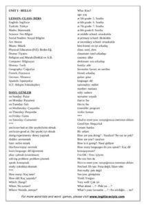 Unit 1 Hello Lesson Class Ders For More Word Lists And Word Games, Please Visit