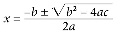 x = \frac{-b \pm \sqrt{b^2 – 4ac}}{2a}