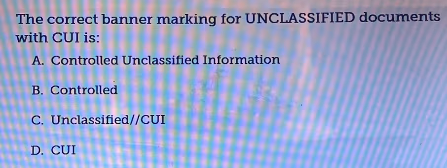 - CUI (Controlled Unclassified Information) is the proper banner marking for documents that contain CUI.
