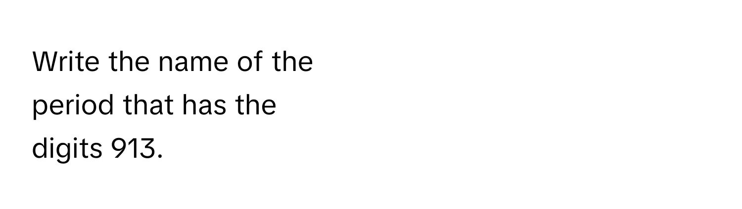 Write the name of the period that has the digits 913.
